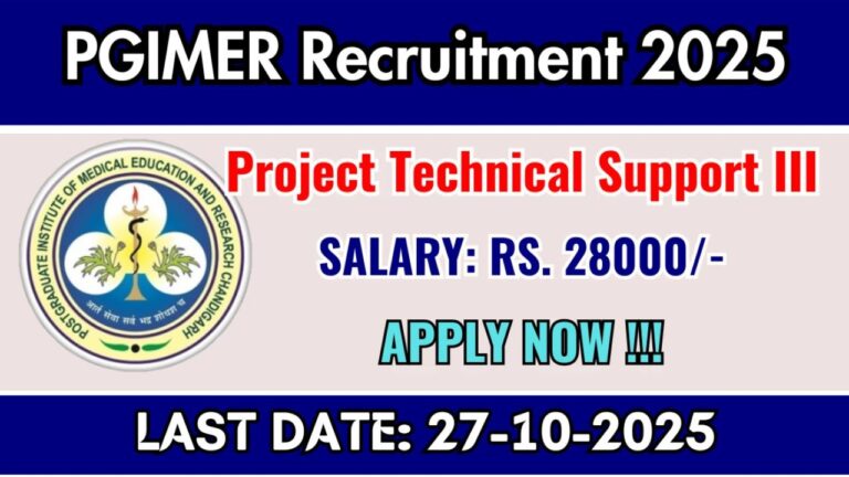 PGIMER Project Technical Support III Recruitment 2025 – Latest Notification & Application Details