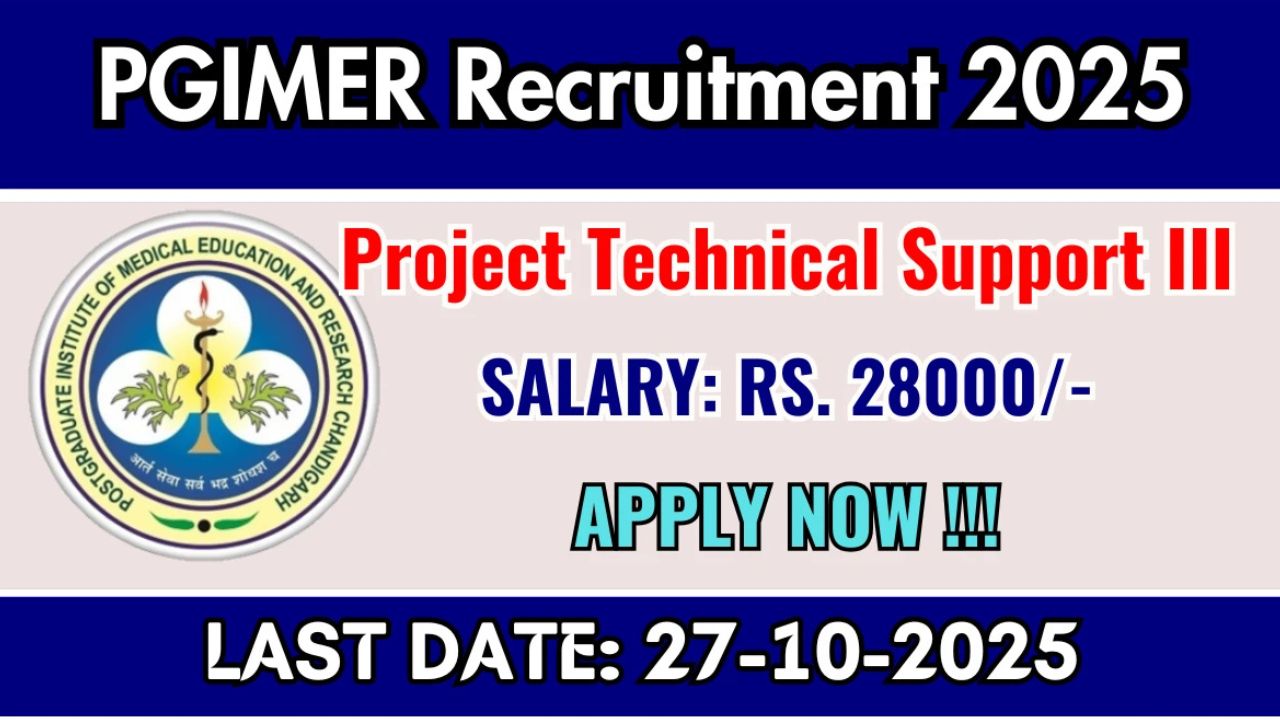 The Postgraduate Institute of Medical Education & Research (PGIMER), Chandigarh is a leading medical and research institution in India. To support its various research projects, PGIMER engages technical support personnel for project-based temporary positions. One such role in 2025 is Project Technical Support III, which provides graduates or postgraduates with an opportunity to work in research settings, gain experience, and contribute to medical / healthcare research.